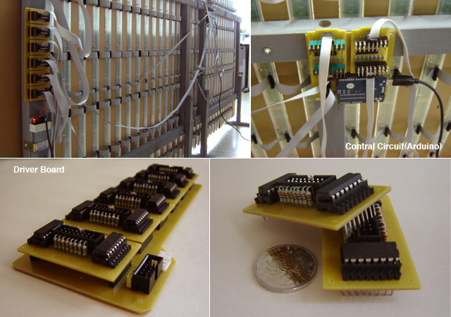 I used Arduino as the controller. Since thousands of LEDs need to be controlled and the I/O ports of Arduino are not enough for all, I designed a driver circuit board using shift register chips, which can be controlled just by several I/O ports of Arduino.