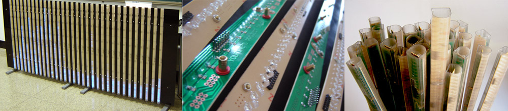 I designed a PCB board with 16 LEDs as a display unit, which gave the freedom to extend the LED pipe into differnet lengths. This screen has 32 LED pipes and each pipe is composed by six display units. So, totally there are 16*6*32 = 3072 LEDs are soldered to the whole screen.