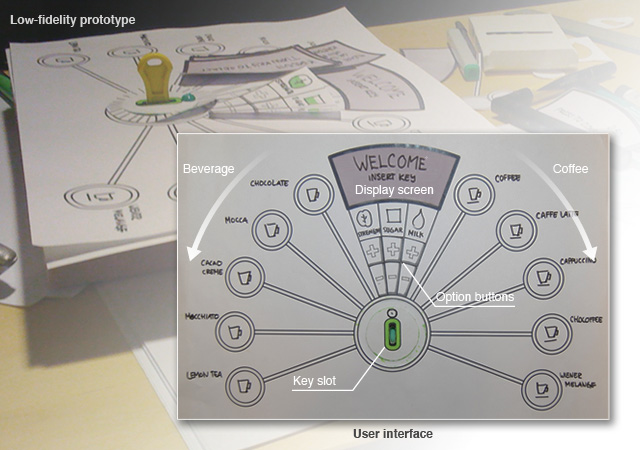 We were asked to re-design the interface of the vending coffee machine used in UID which can offer several tastes of coffee and beverage for the UID staff and students.
