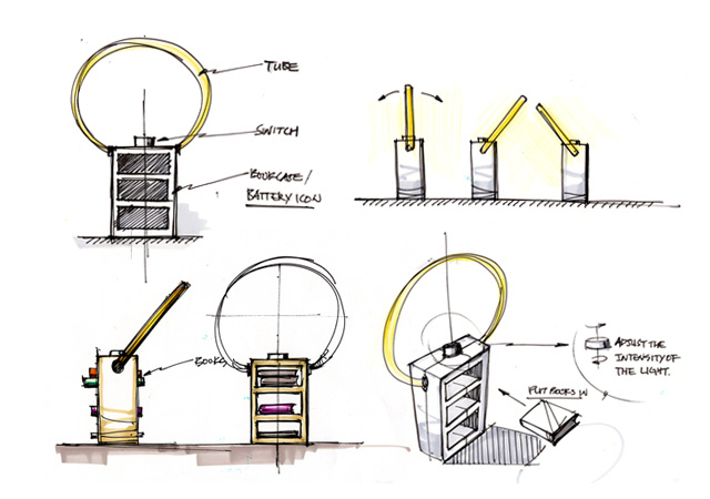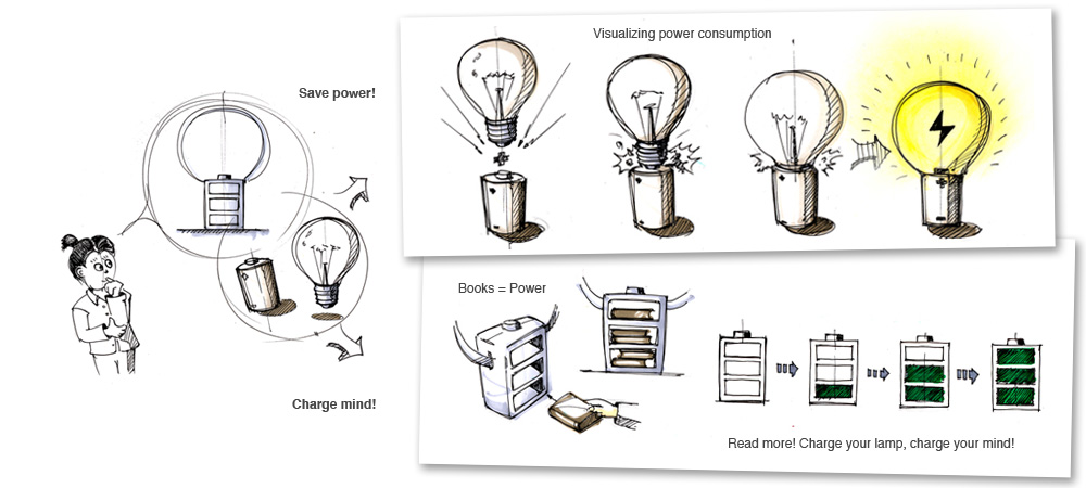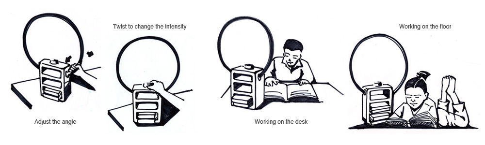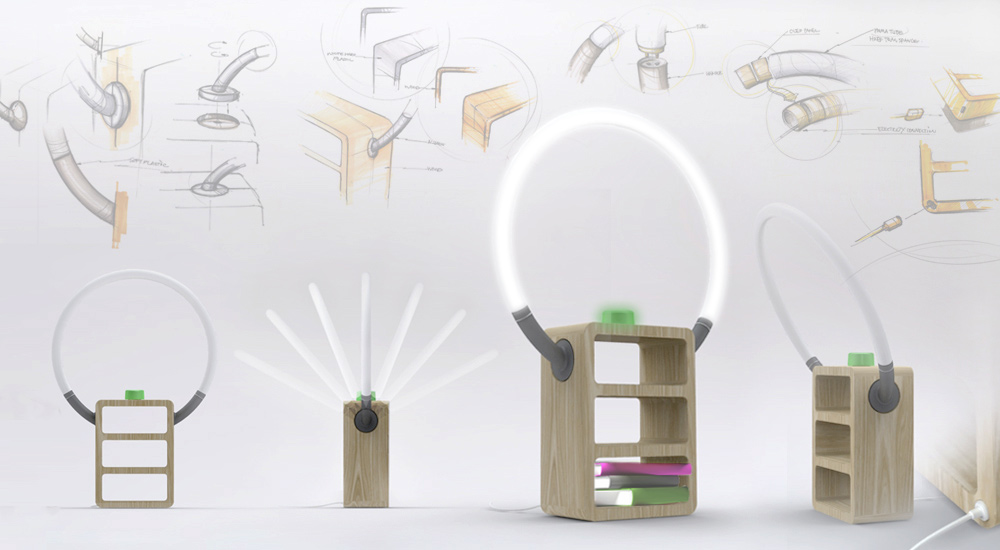 The lamp is just like the combination of the light bulb and the battery. To some, the shape visualized the power consumption, and the information I want to convey to the young user is the awareness of power saving.